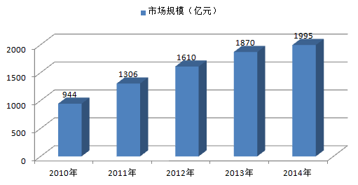 2010-2014年高端连锁餐饮市场规模走势图